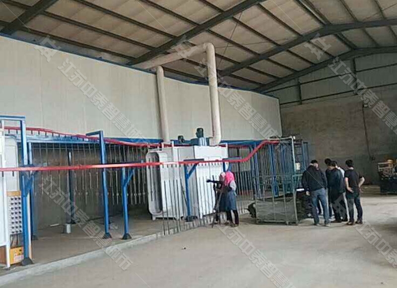 1、噴塑線:上輸送鏈——噴塑——烘干(10min、180℃-220℃)——冷卻——下件